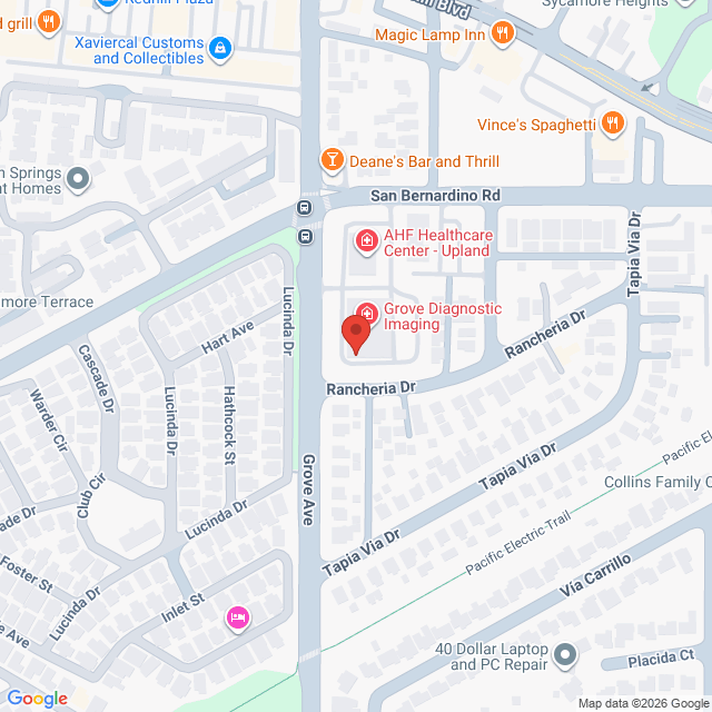 We are located on the southeast corner of San Bernardino Road and Grove Ave. If you have any questions or need specific directions, please call the office at (909) 946-2068. Thank you